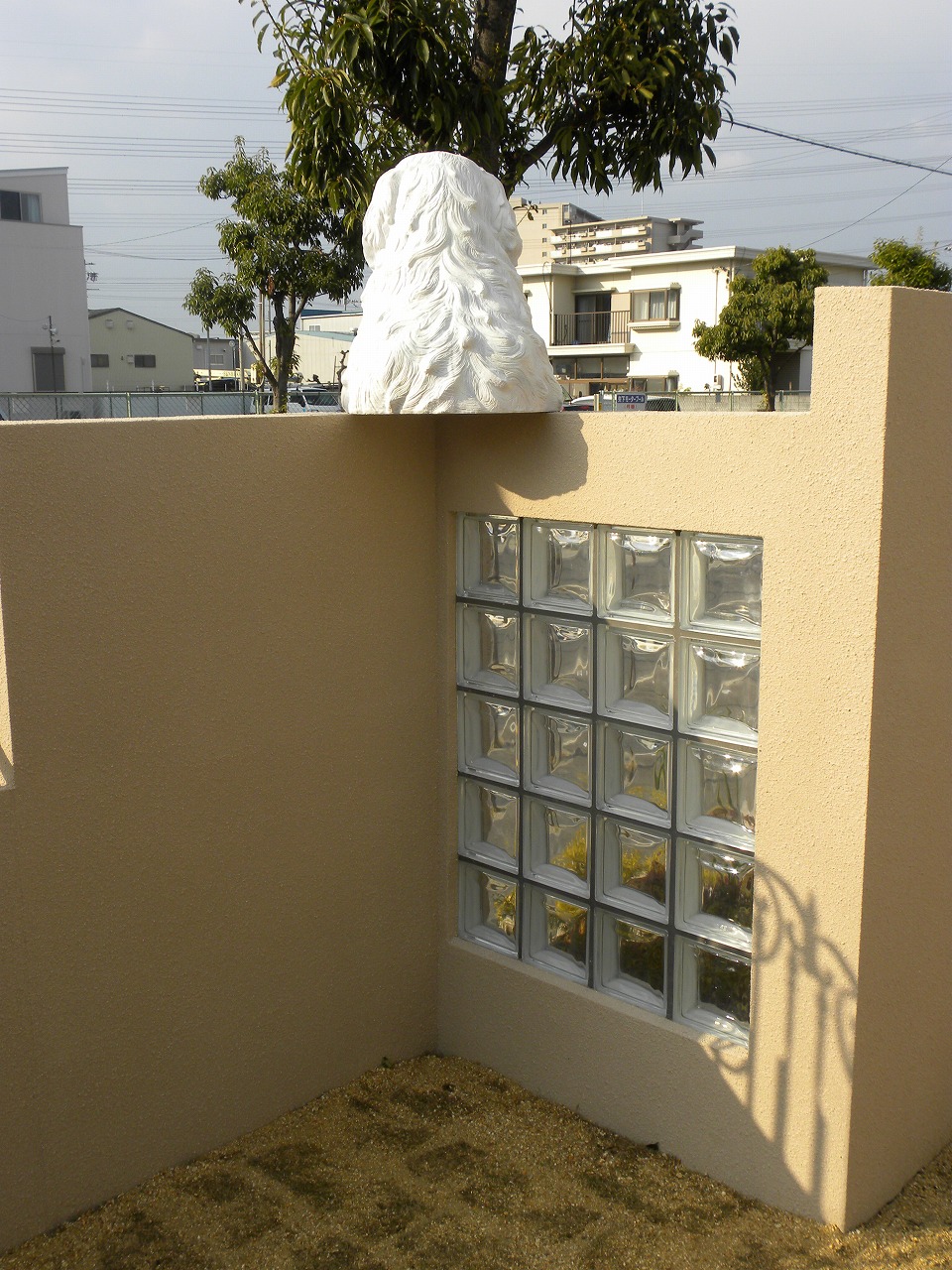 塀の上のチャチャ 犬